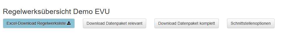 Der Regelwerksmanager besitzt eine Exportfunktion nach Excel, welche dem Firmenverwalter zur Verfügung steht. Zur Generierung wird die Schaltfläche „Excel-Download Regelwerksliste im Home-Bereich gedrückt.